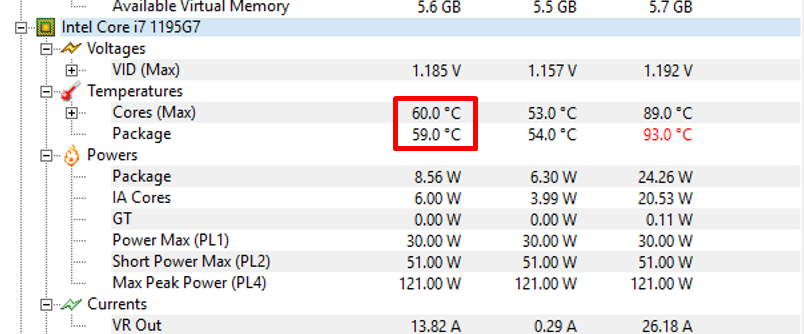 Your processor's (Intel Core i7-1195G7) maximum safe operating temperature is 100°C (tJMax).